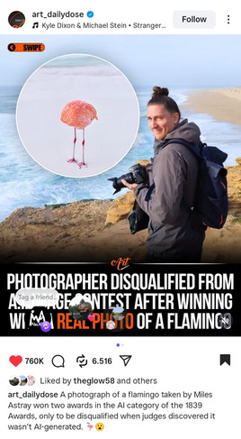 The Guardian recently used FLAMINGONE for a marketing campaign, but I'm only allowed to show you that one little frame from the clip without violating usage agreements, and I got no time for jail, or worse, an email exchange. That bird went somewhat viral again this summer and raked in millions of likes, most notably on the world's largest art page @art_dailydose with its 20+ million followers.